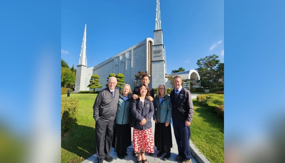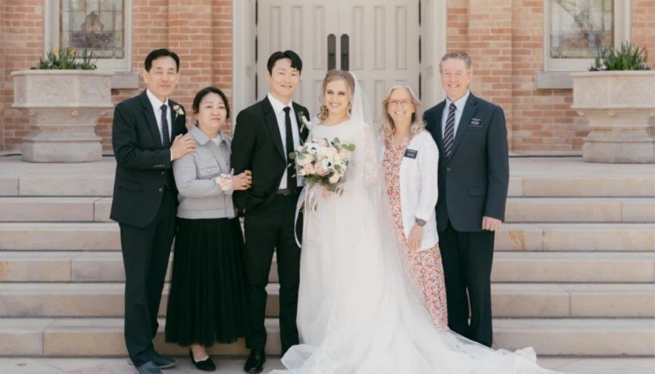 Cerca de seis meses depois, em abril de 2023, as famílias tiveram a chance de ir ao templo juntas novamente – dessa vez, nos Estados Unidos, para uma ordenança ao vivo. Youngchan estava sendo selado à sua esposa, Meganne, no Templo de Provo City Center, e os Kims convidaram os Wigington para participar.